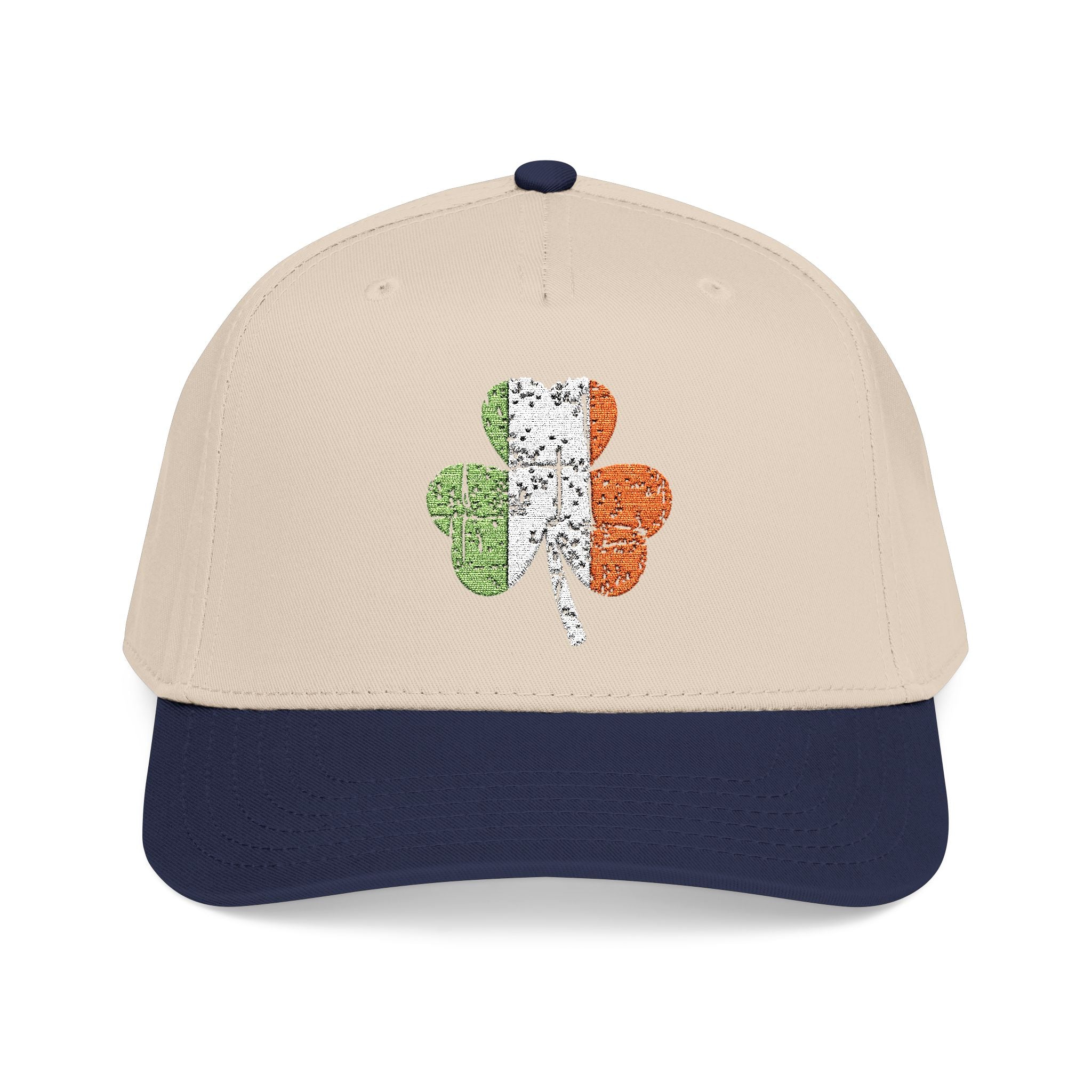 This mid-profile baseball cap brings a relaxed, outdoorsy vibe with a hand-touched shamrock motif rendered in the Irish tricolor. The structured five-panel silhouette and seamless front panel keep the design clean and centered, while the two-tone look (light crown with a darker undervisor and brim) adds subtle contrast. Wear it to show quiet pride, to crown a weekend walk, or to top off a cozy, casual outfit when the day calls for low-key charm.