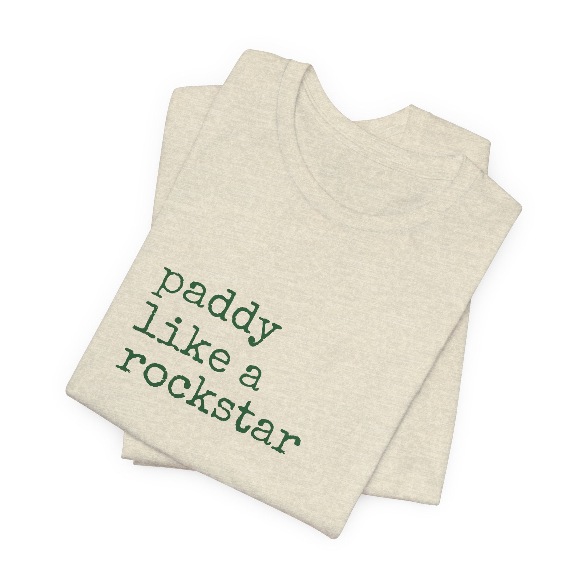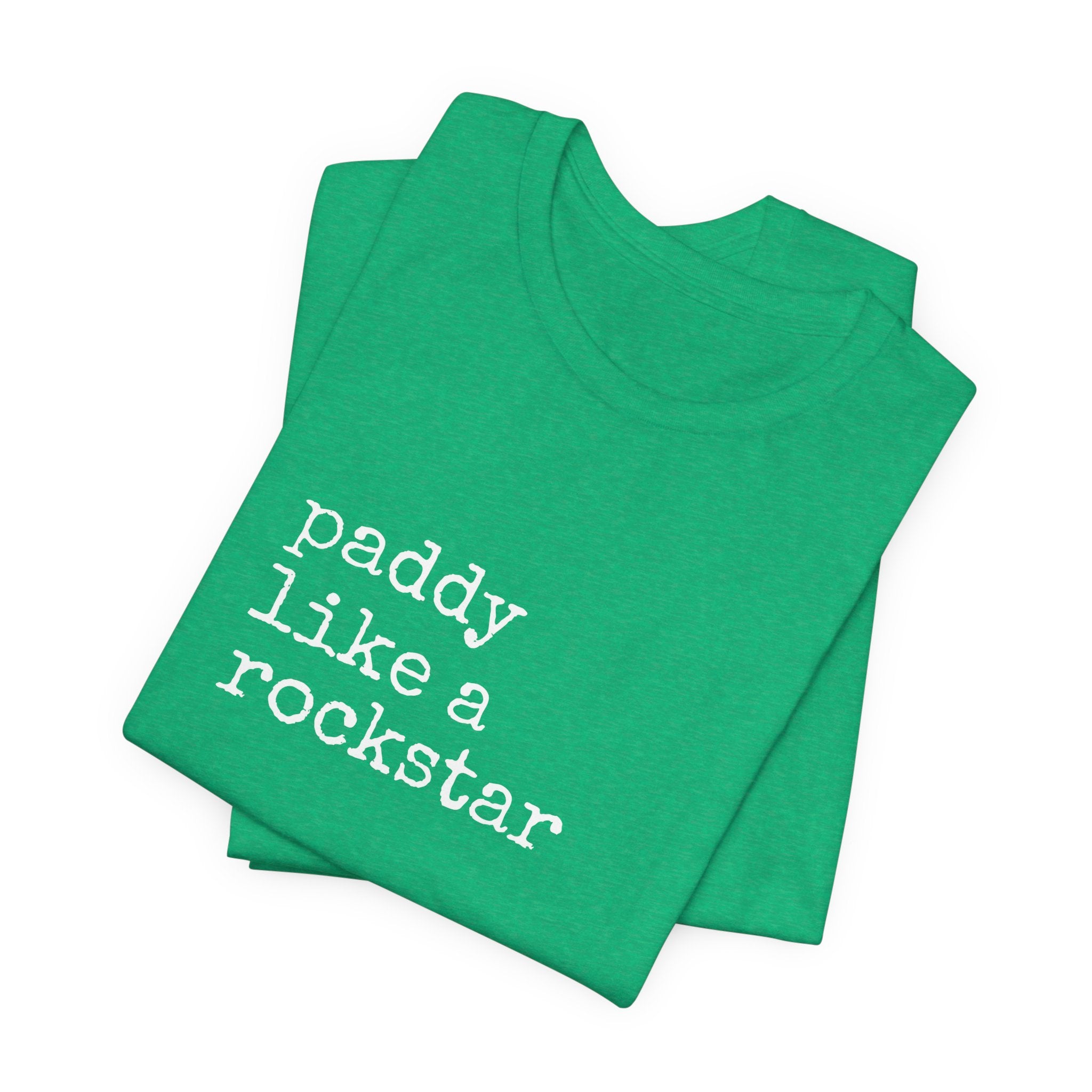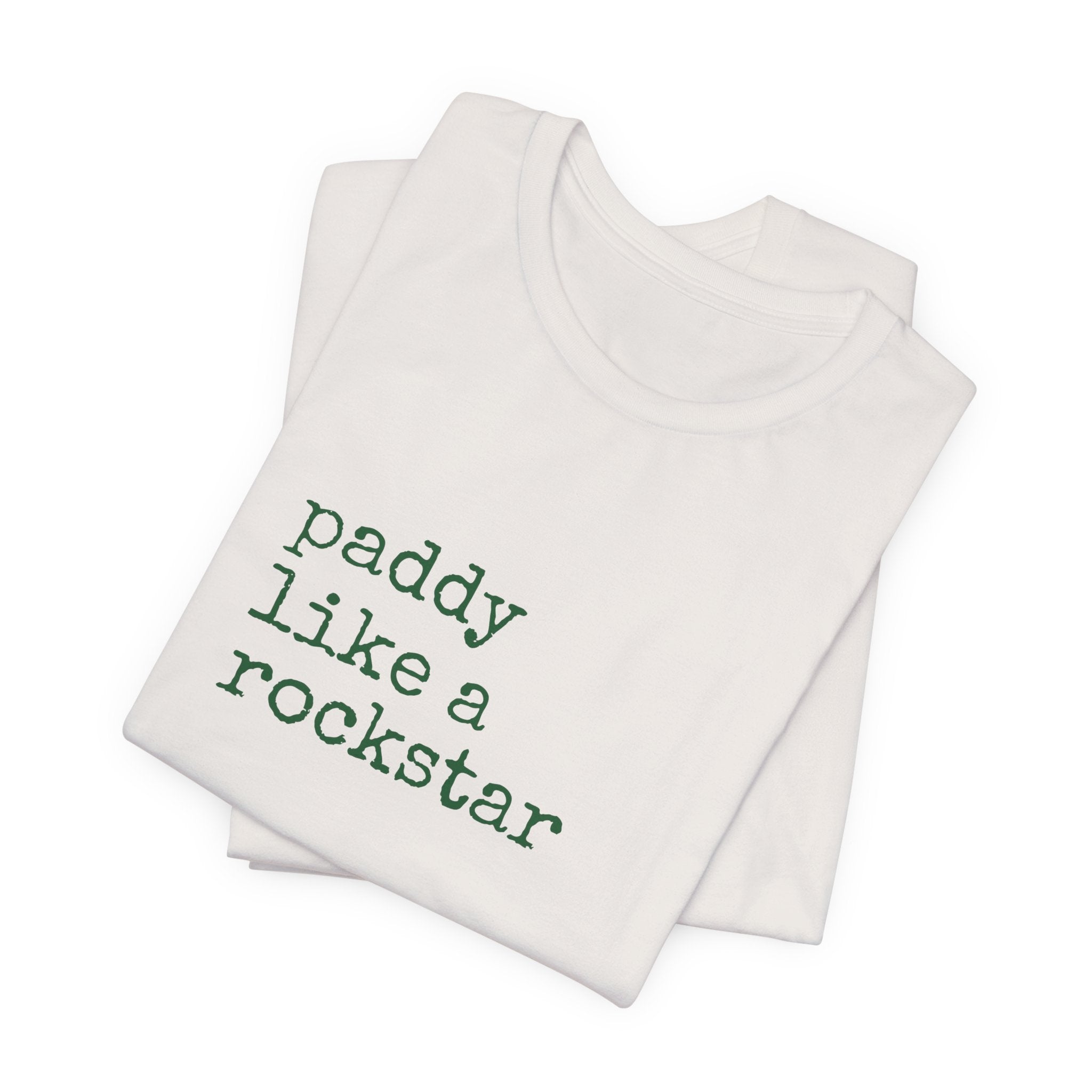 Lightweight, soft, and quietly bold — this tee says it all with a wry, confident line: “paddy like a rockstar.” The slim retail cut and crew neckline keep the silhouette clean so the text becomes the personality. Made from Airlume combed and ring-spun cotton, the fabric breathes and layers easily for long days out or relaxed evenings in. Subtle heathered color and a smooth printed label make it comfortable against skin, while side seams and shoulder tape keep the shirt holding its shape wash after wash. Wear it to pub crawls, festivals, casual brunches, or to add a playful edge to a laid-back outfit — it fits into a life that values humor, music, and a little bit of mischief.