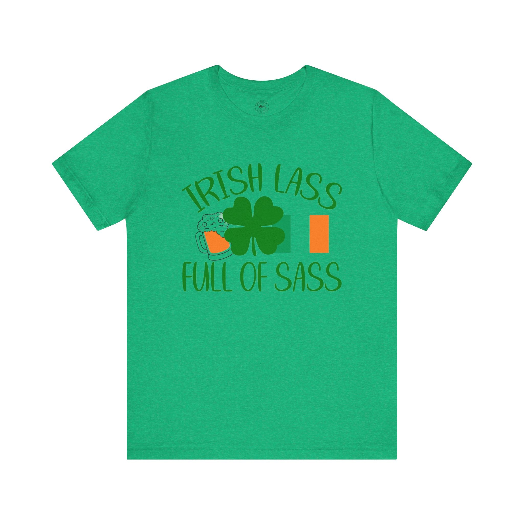 Irish Lass Full of Sass T‑Shirt — St. Patrick’s Day Shamrock & Beer Tee