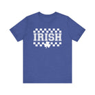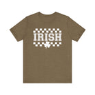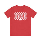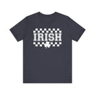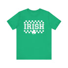 Soft, breathable tee with a vintage-inspired Irish checkerboard print and a small shamrock accent. The lightweight Airlume combed cotton feels gentle against skin and drapes well for everyday wear. It sits casually at the hips with a classic crew neckline and clean side seams that keep the shape through many washes. Wear it on a relaxed day out, to a casual gathering, or layered under a jacket — it carries a quietly nostalgic, celebratory vibe without shouting for attention.