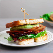 Fresh avocado, Jones Dairy Farm thick-cut bacon, lettuce, tomatoes, pesto mayo on house-made sourdough batard