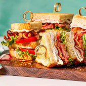 A classic combination - roasted chicken, Jones Dairy Farm thick-cut bacon, cheddar, havarti, tomato, hand-smashed avocado