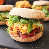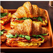 A classic breakfast sandwich featuring an egg frittata, Jones Dairy Farm thick-cut bacon, and Wisconsin cheddar cheese on a flaky house-made croissant bun.