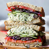 Creamy edamame hummus, fresh avocado, fresh arugula, crisp cucumbers, tomatoes, and bright vinegar slaw on house-made batard.